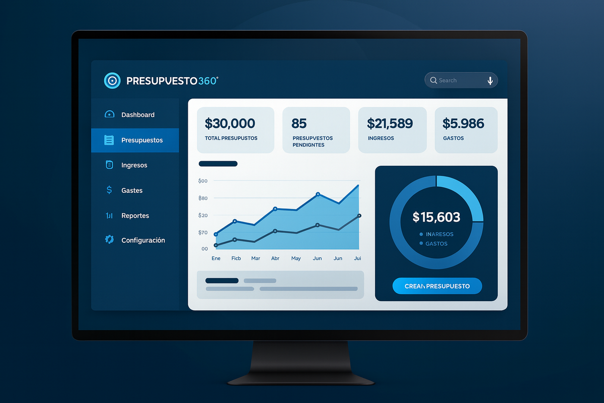 Presupuesto 360 es un sistema inteligente diseñado para profesionales, técnicos, comercios y empresas que necesitan crear, organizar y hacer seguimiento de sus presupuestos de manera rápida, ordenada y sin errores.