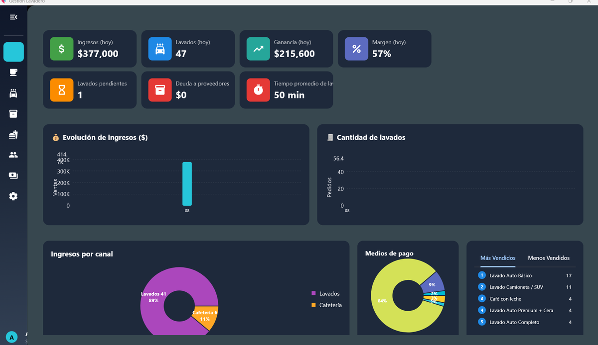 Incrementa tus ingresos con el módulo de cafetería incorporado. Administra tu menú, controla inventario de productos, registra ventas complementarias y ofrece a tus clientes una experiencia completa mientras esperan su vehículo.